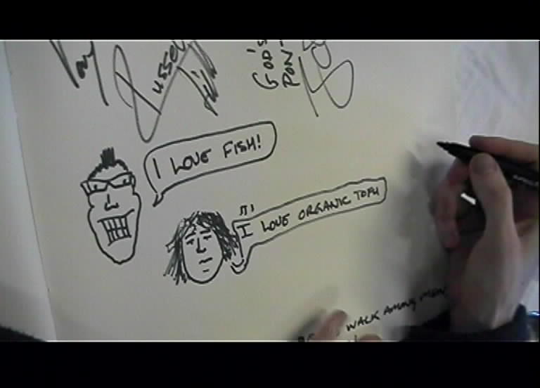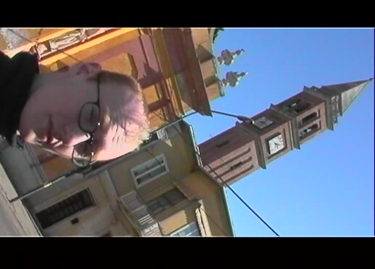 Meanwhile, Cerise and Alan in the merchandise van weren't having such a good time, after a minor skirmish with a tollbooth barrier! The gig was in a cinema / theatre run by a large interfering git in a DJ and overcoat who constantly barked orders at his staff. He even wanted us to stick up T-shirts on the front of the merchandise flight cases because they looked untidy! We started to get a little peeved when he got one of them to walk around the foyer, spraying an aerosol behind him. They're obviously not used to Rock 'n' Roll there...